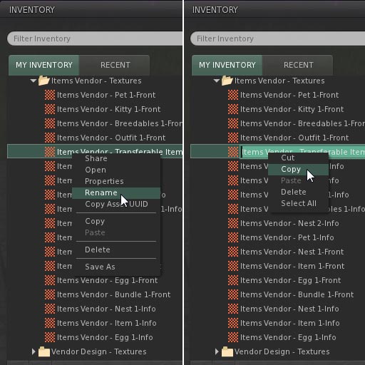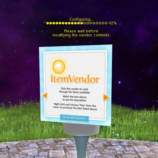 The first process in setting up your vendor is to name your items. If you are using this for breedable pet items or something with a non-descript name that cannot be changed, you can still define what they are by using the Special Item description field in the _config notecard.